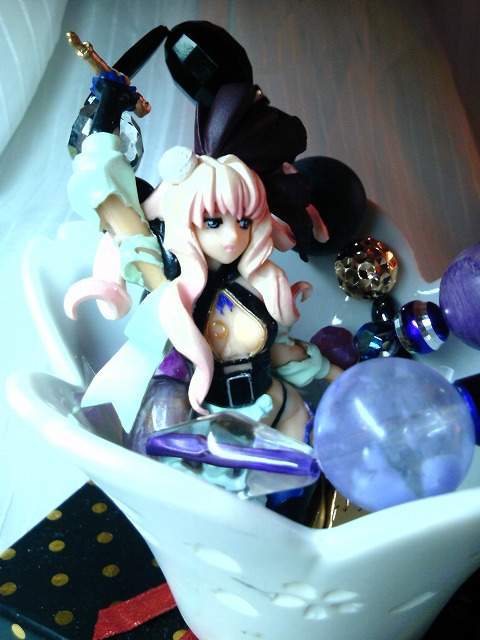 余ってた小皿とビーズがあったのでシェリル様に納まって頂きました。写メです。